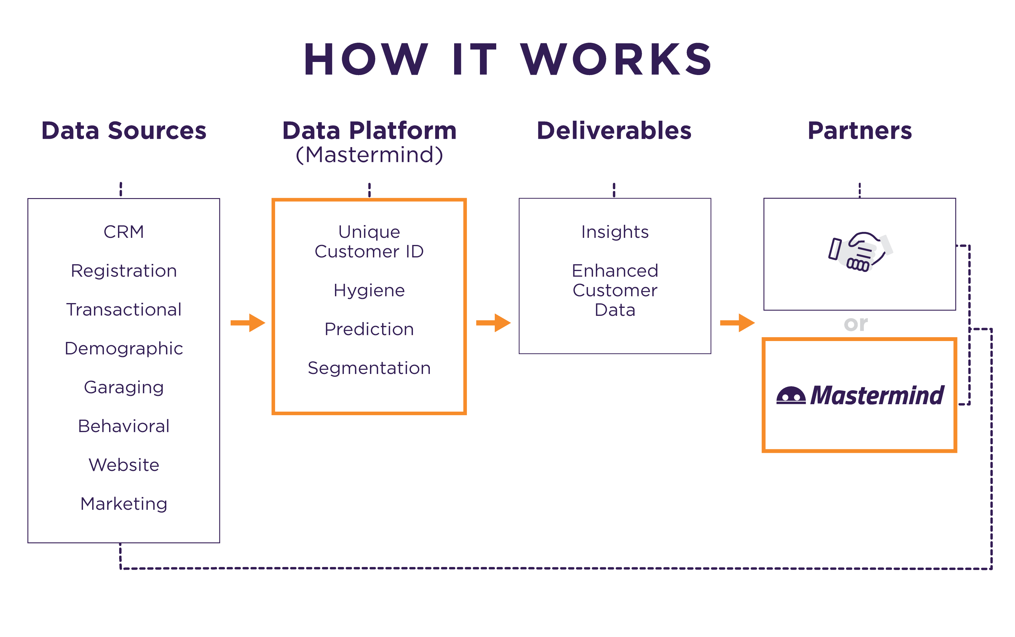 Mastermind enables dealer groups to bridge the gap between their group strategy and store-level operations by ingesting, enriching and activating customer data across all rooftops.