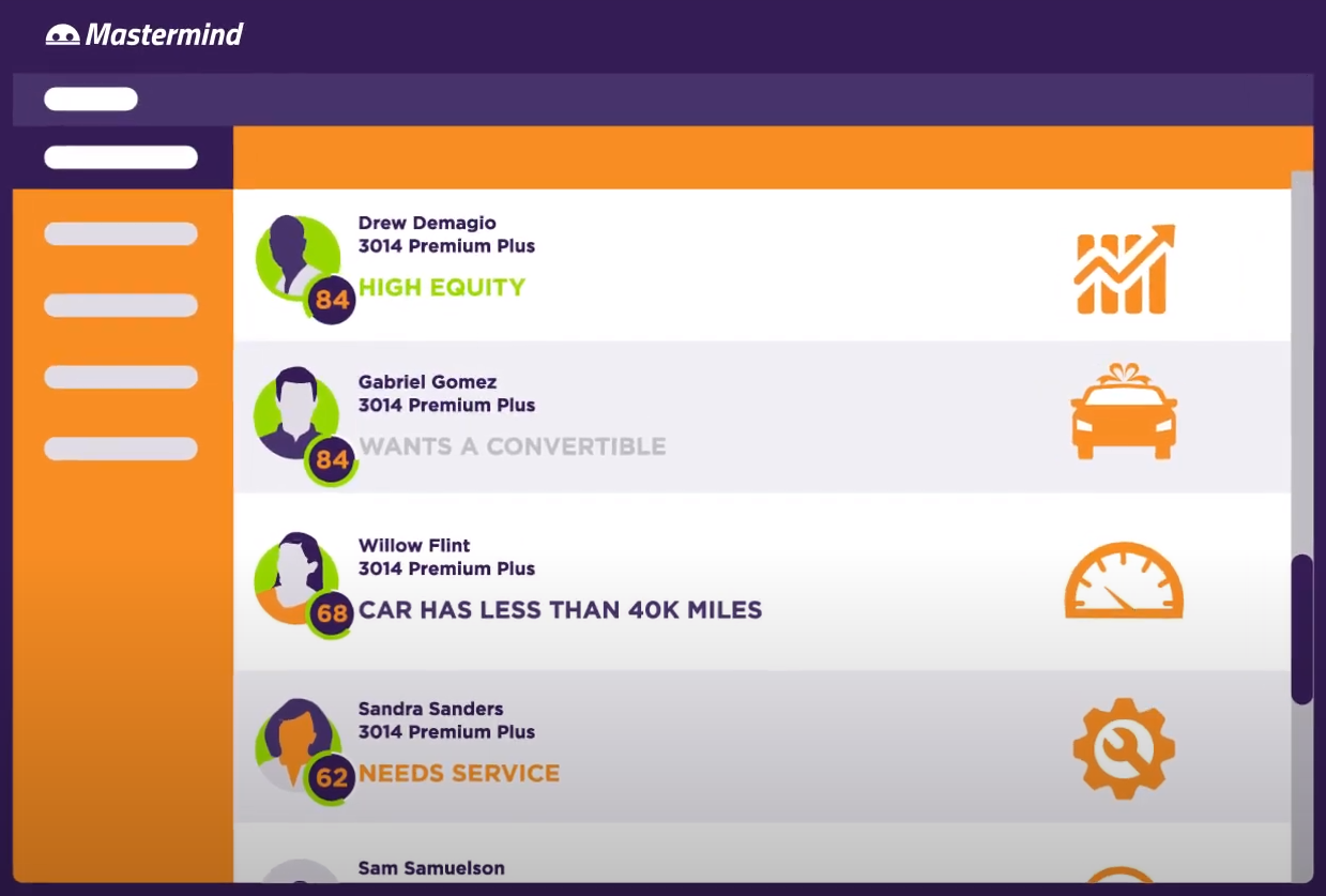 Picture having this level of intelligence at your fingertips for every customer in your database. That's the power of the Mastermind sales and marketing platform. It’s like creating a virtual prioritized line of buyers outside your dealership’s doors.